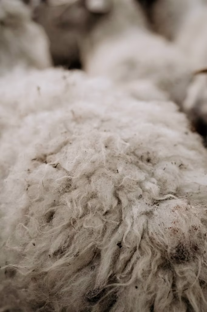 The first step is to shear the sheep. This happens once a year, in the spring. At that time, the sheep still have their heavy winter coats, and shearing them allows them to remain cool during the summer. Shearers use specific electric clippers to remove the wool in one piece, called a fleece.